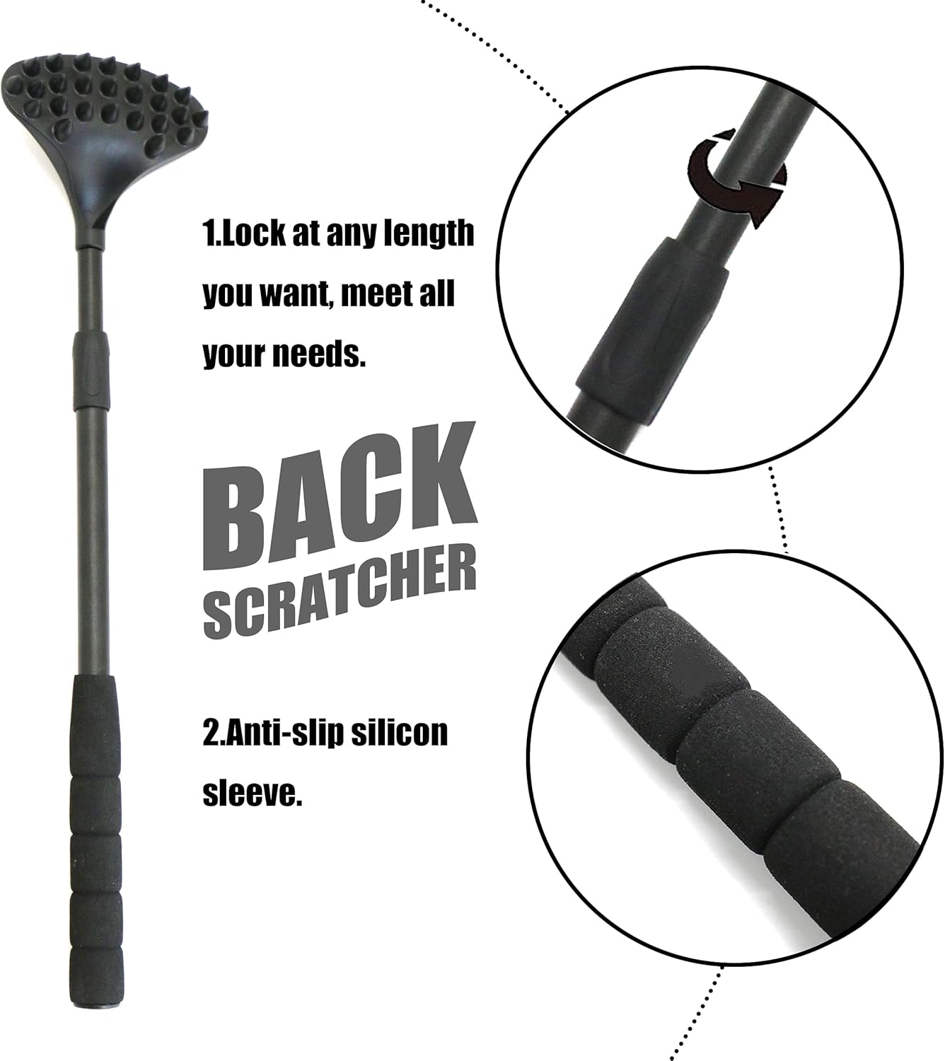 Feature 【Work Well in A Full Range】You will love the sensation of the strong ABS scratching curved head on your bare skin. Adjustable 14-21.5 inch curved handle help reaches any sections of the body easily. EASACE ergonomic design back scratcher can be your scalp massager, head massager, back massager, and foot massager.