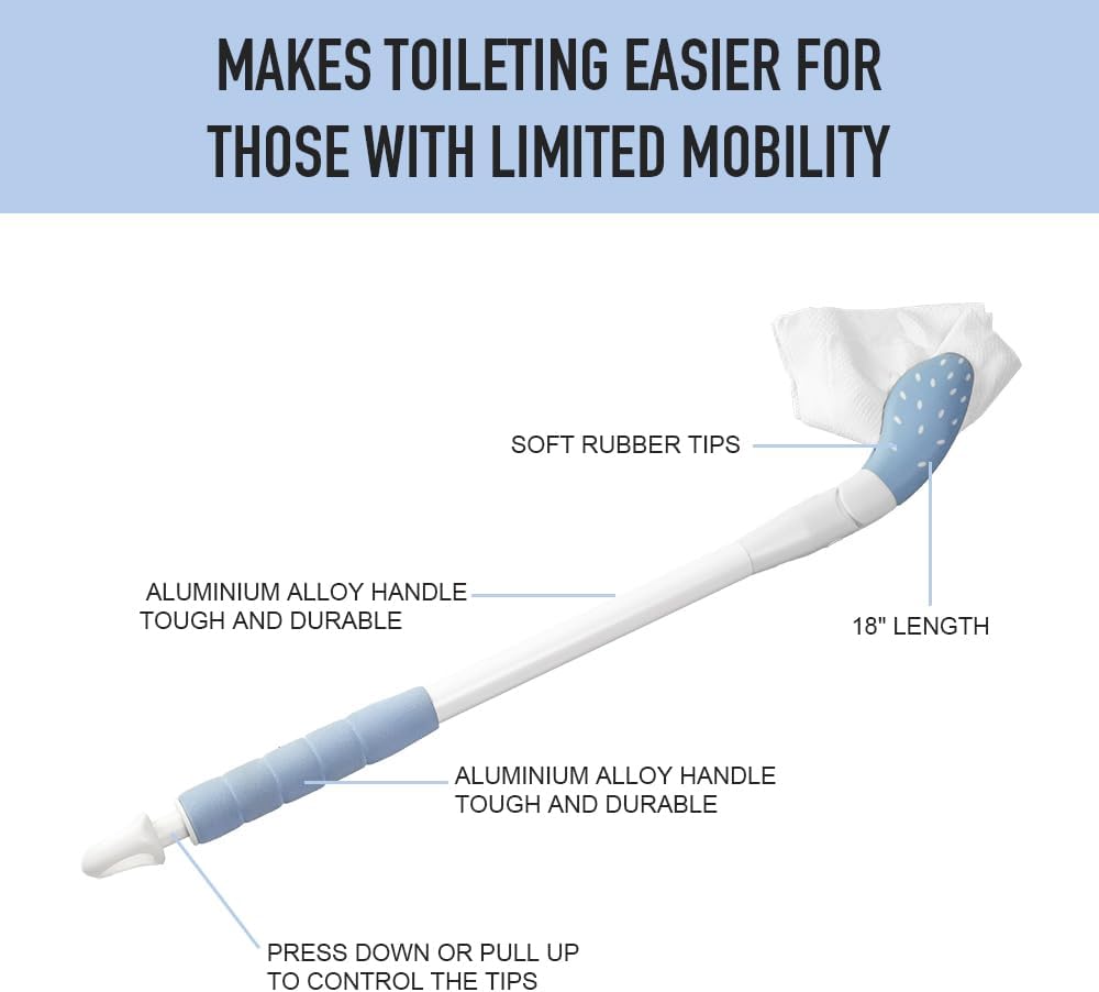 • EXTENDED REACH: 17.5-inch long toilet aid provides comfortable extended reach for those with mobility limitations or difficulty bending and twisting